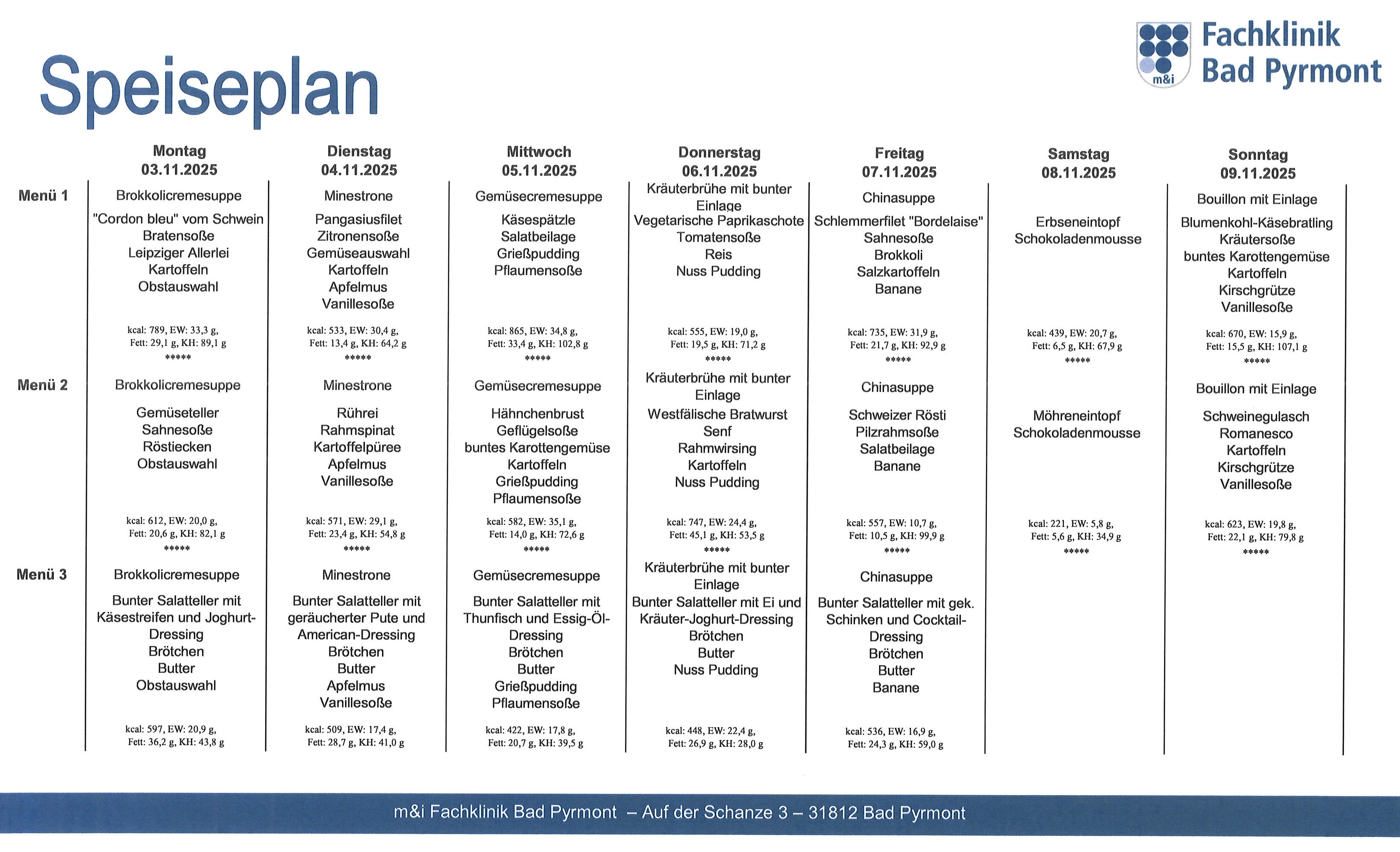 - Speiseplan Woche 03.11. - 09.11.2025